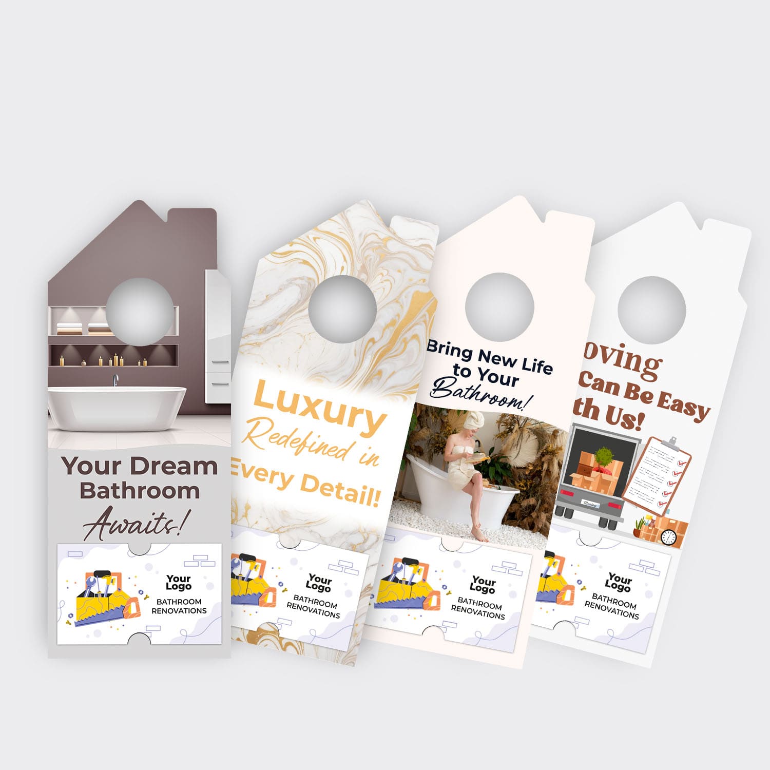 This door hanger will help you connect with potential clients, showcasing that you are the ideal choice to transform their bathrooms into modern and functional spaces. Grow your remodeling business today!