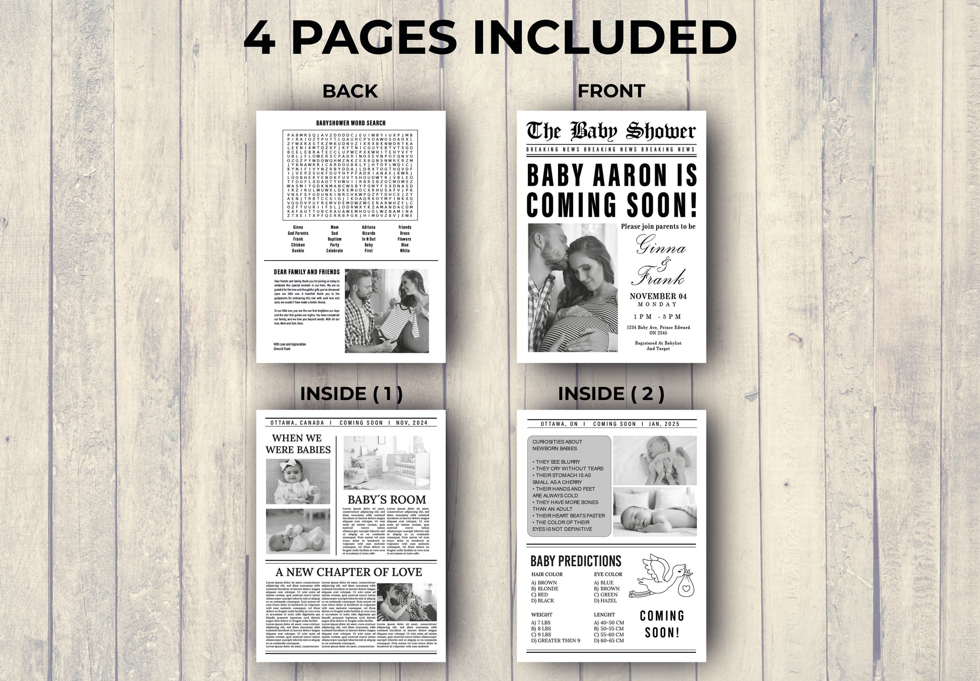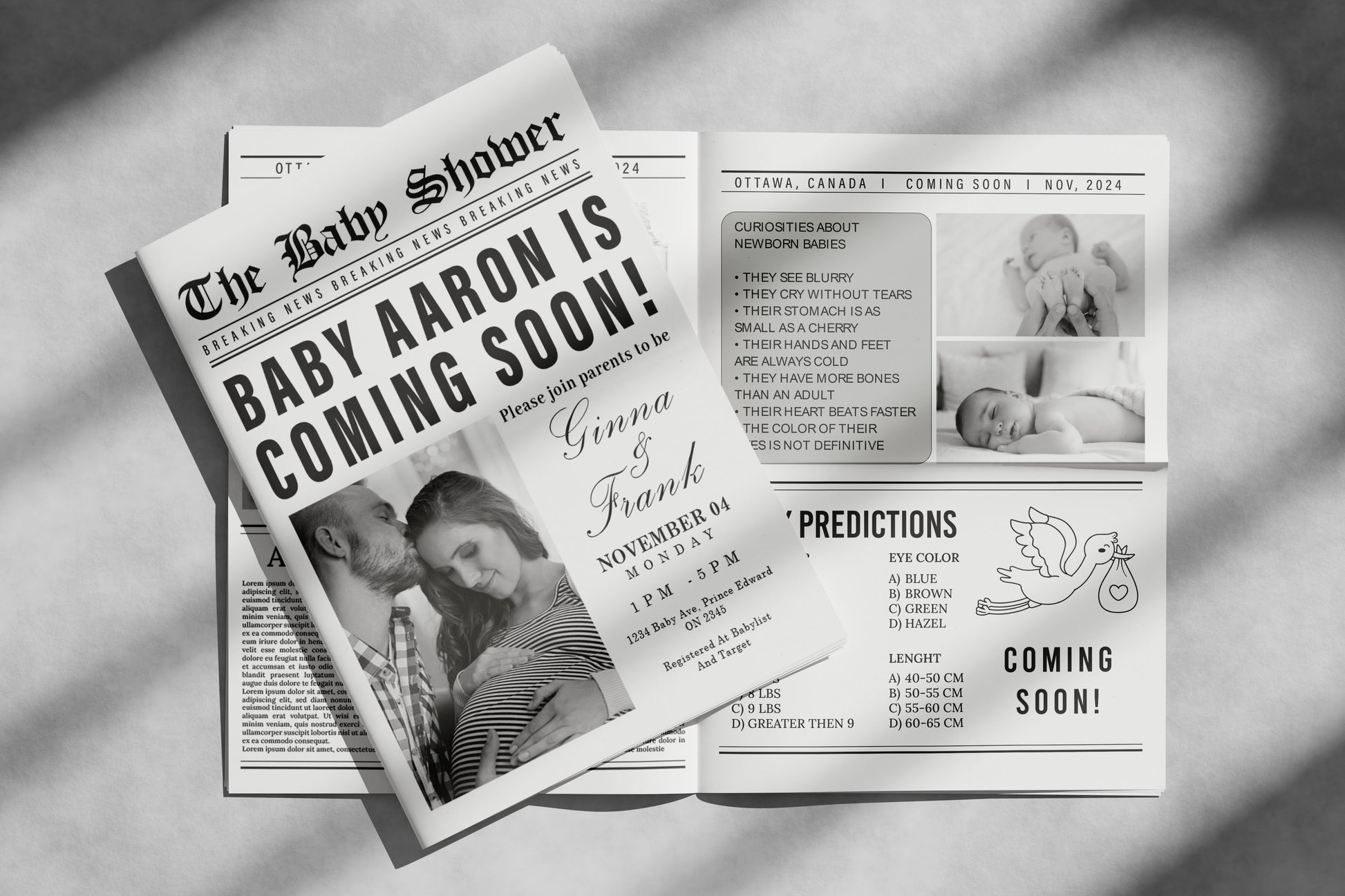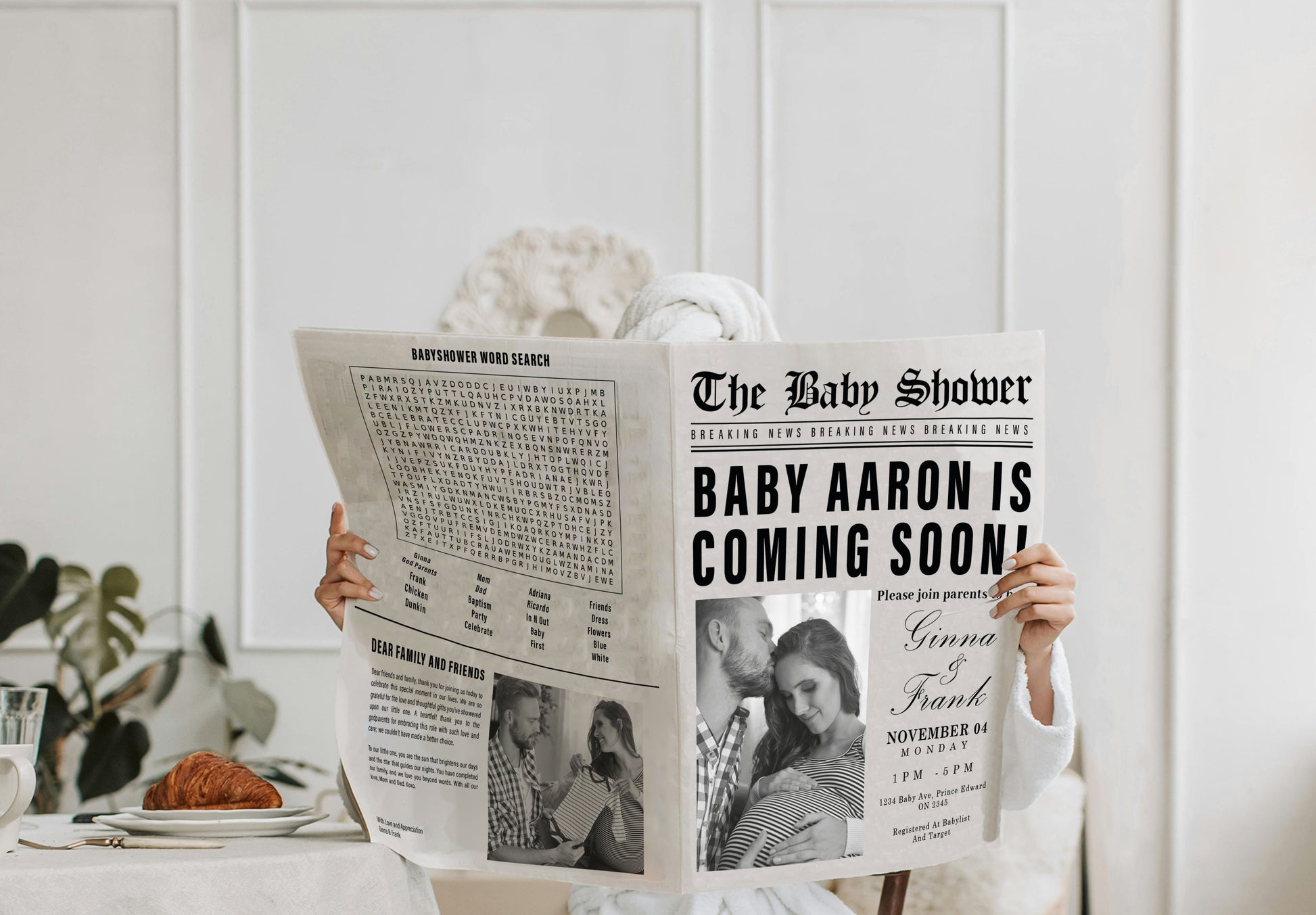 Make your baby shower unforgettable with our vintage-inspired newspaper programs, printed and ready to share with your guests. These charming keepsakes offer a unique way to highlight your story, showcase fun details about the parents-to-be, and entertain guests as they await the big moment.