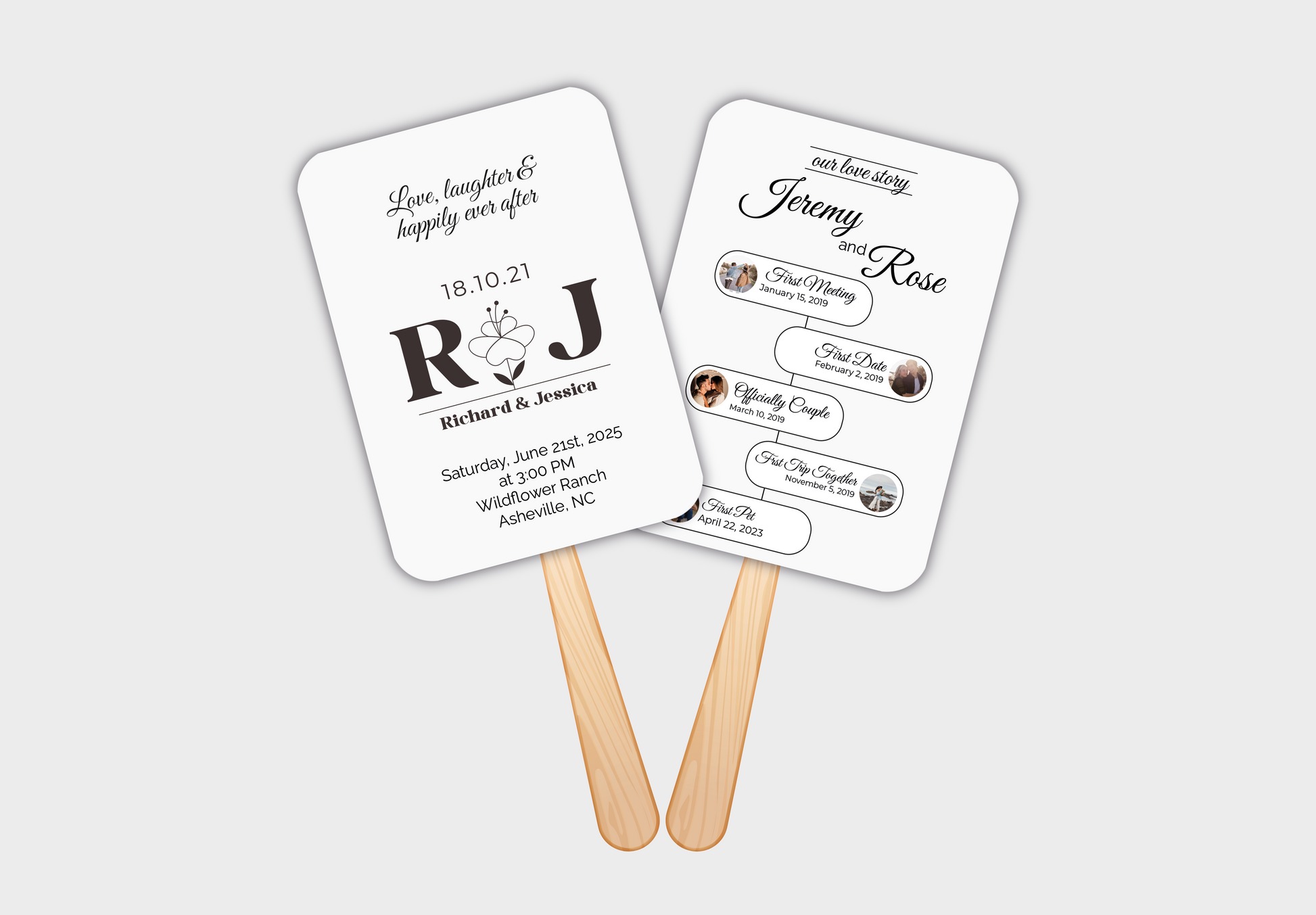 Keep your guests cool and your style on point with our fully customizable wedding hand fans!