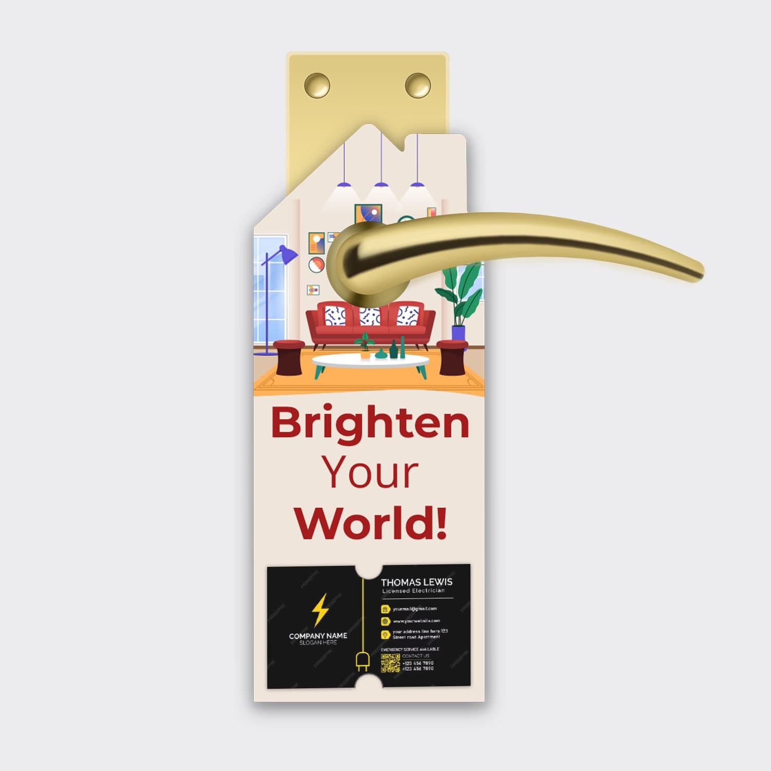 This door hanger is the perfect tool to help you connect with homeowners in need of electrical services. Showcase your expertise in electrical installations, repairs, and upgrades, and demonstrate that you are the trusted professional for their needs. Increase visibility and grow your electrical business today!