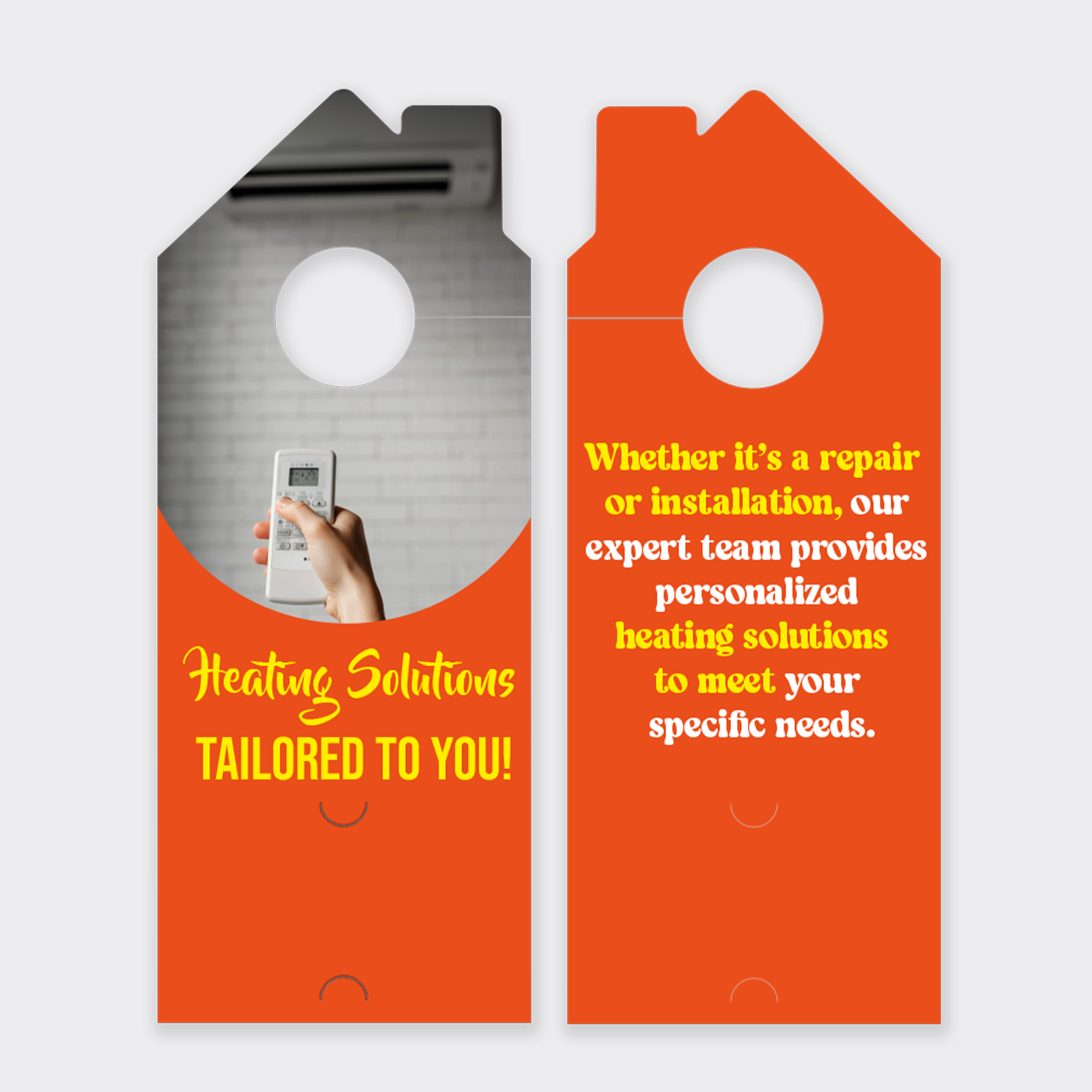 Enhance your heating service business with our professional door hangers, designed for HVAC companies and heating professionals. These customizable door tags are perfect for communicating service details, maintenance reminders, and repair notices. Ideal for furnace and boiler services, they help you stay organized and build client trust by clearly displaying essential information. Perfect for seasonal heating checkups and winter prep, our door hangers make sure your clients are informed and ready for every service visit