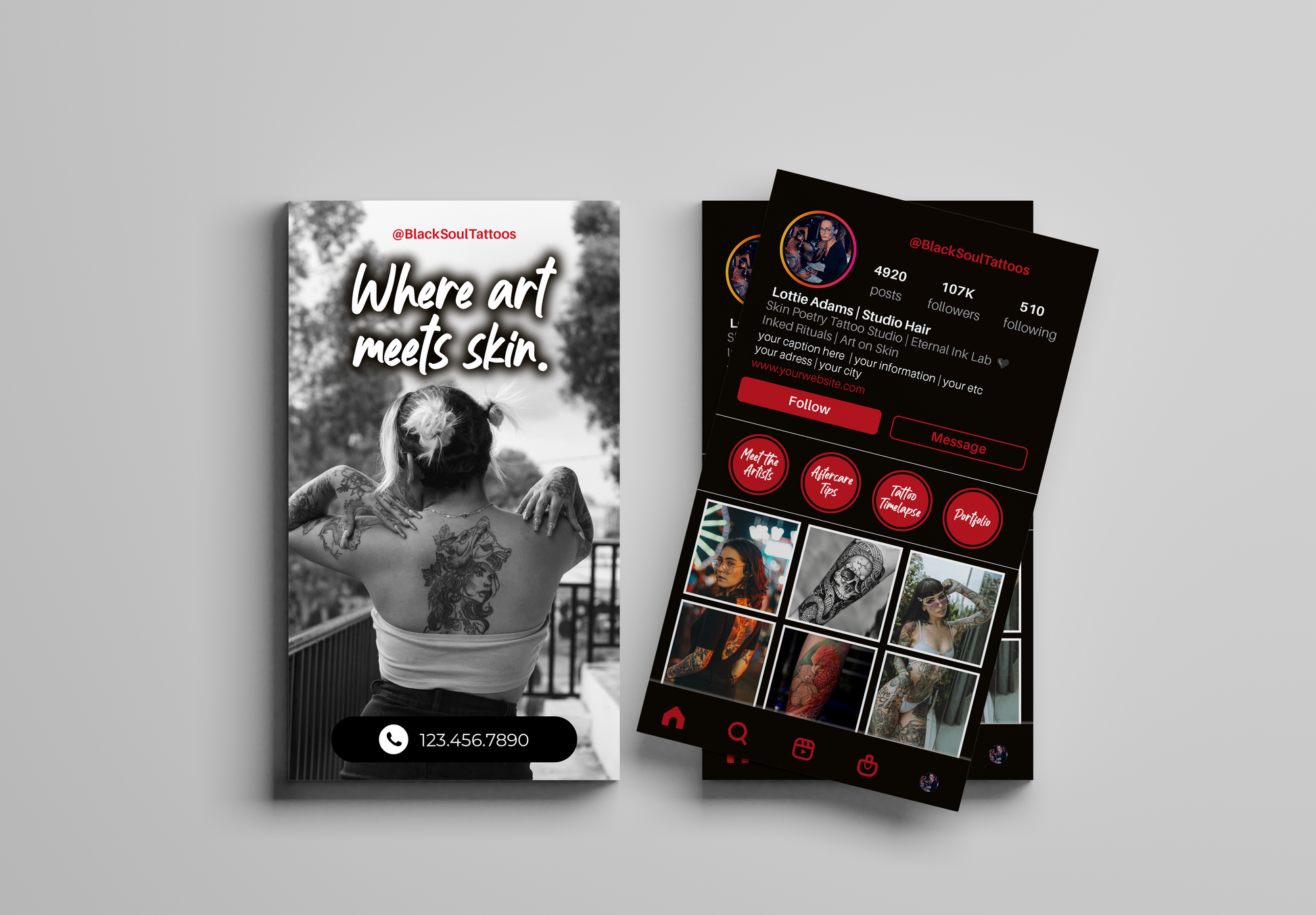 Printed Tattoo Business Cards | Custom Instagram Cards for Tattoo Artists | Studio Branding | Client Inserts | Promo Cards for Ink Pros | IG | 001