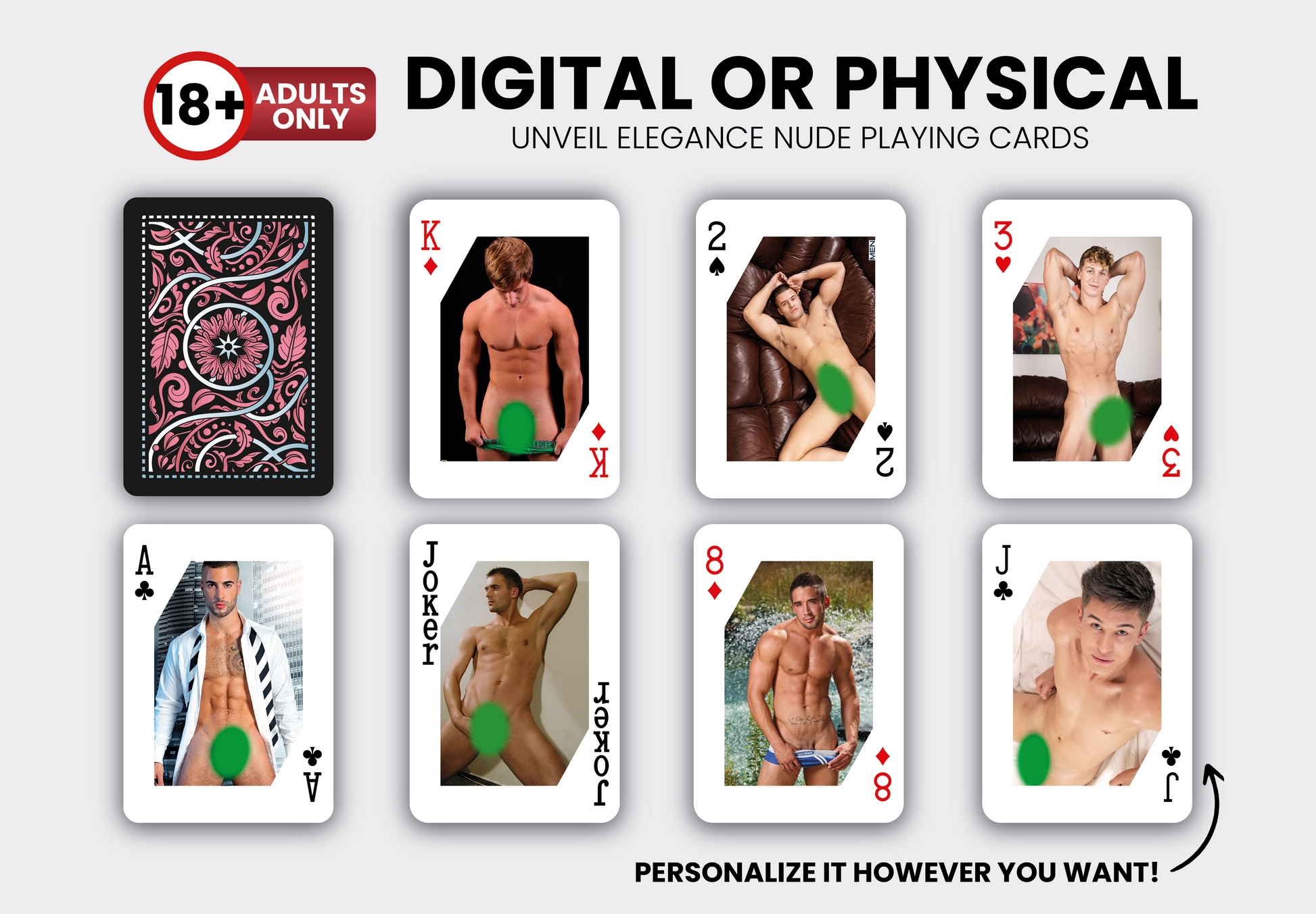 Take personalization to the next level with our nude playing cards cards. Whether you're looking to include intimate photos or create a design that's uniquely yours, we handle your vision with the utmost professionalism. Perfect for those who want to make a bold statement with sophistication and style. Have questions? Feel free to reach out—we're here to help every step of the way!